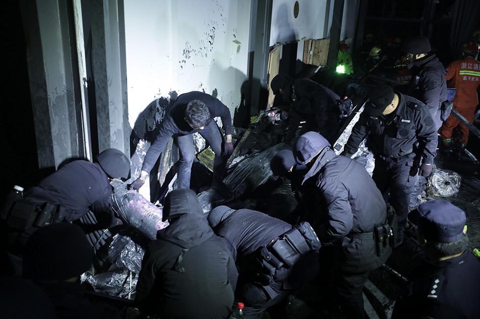 2019年12月3日,浙江海寧,救援人員在現(xiàn)場搶險搜救。世紀特邦圖 12月3日17時19分許,海寧市許村鎮(zhèn)蕩灣工業(yè)園區(qū)內海寧市龍洲印染有限責任公司發(fā)生污水罐體倒塌事故。此次事故目前已經造成9人死亡,另